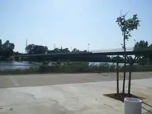 - Puente de Camas a la altura de torre Triana; antiguo puente de la línea ferroviaria, que se construyó sobre la corta de la Cartuja prácticamente a continuación del que sustituyó al puente de Alfonso XII , tras modificar el trazado de la línea ferroviaria pasó a ser utilizado como pasarela peatonal-ciclista y carril bus.