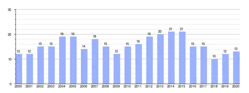 Gráfica de evolución demográfica de Puentetoma[3] entre 2000 y 2020 |