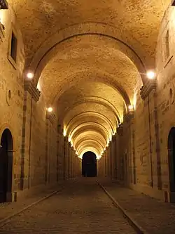 La construcción de la Puerta Oscura se inició en 1824 por parte de Alexander Rudnay, arzobispo de Esztergom, dos años después de que se pusieron los cimientos de la basílica de San Adalberto. Se le dio el nombre de Puerta Oscura por la falta de iluminación. El objetivo principal del túnel era conectar directamente las casas canónicas con el Seminario, pero también conectar Szentgyörgymező con el centro de Esztergom.