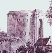Hacia 1565-1568, Brueghel el Viejo representó la puerta de Hal en su cuadro El vino de la fiesta de San Martín’’.[2].