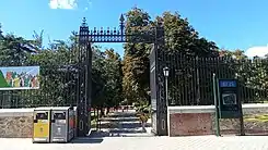 Entrando al parque, a la izquierda de la misma puerta, se encuentra la Biblioteca Pública Municipal Eugenio Trías en lo que fue la antigua Casa de Fieras del Retiro.
