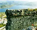 Se compone esta última de una base trapezoidal sobre la que se asienta un primer cuerpo cúbico en el que podemos apreciar una entrada en su pared frontal que debe ser el arco de entrada. También se observan cuatro ventanas, dos en la pared frontal y otras dos en el lateral norte. Sobre este cuerpo existe otro de menores dimensiones pero de igual configuración. Por último, un tercer cuerpo, cónico, más estrecho que los anteriores con cubierta abovedada culminado con lo que parece una veleta. Por tanto, nos encontramos ante una torre de tres cuerpos con entrada en el primero de ellos y que su situación espacial nos revela que es,sin duda, el denominado Arco de la Villa.