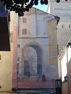 Tenía tres ingresos en el centro destinados para el paso de las personas y dos puertas laterales que serrvían para el tránsito de coches y caballerías. Antiguamente se llamaba puerta de las Santas Masas.