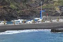 Al abrigo del puerto pesquero se encuentra la playa del mismo nombre, el cual merma del fuerte oleaje que bate siempre en la zona. Es una playa pequeña de unos 200 m y de poca afluencia, situada en un espacio rústico, con cultivos de plataneras y ñames casi hasta la orilla del mar.[2] En la costa se encuentran también las piscinas naturales del Charco Azul, pequeño centro turístico del municipio.