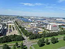 En total el puerto abarca 620 ha de superficie acuática y 1995 ha de terrenos secos, muelles, calles, vías férreas, construcciones y espacio verde.[3]
