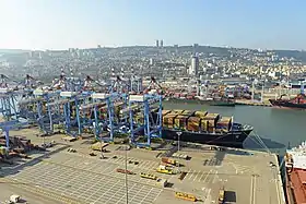 El puerto de Haifa (en hebreo, נמל חיפה) es el mayor de los tres principales puertos marítimos internacionales de Israel, donde se incluyen el Puerto de Ashdod y el Puerto de Eilat. Tiene un puerto natural de aguas profundas que opera durante todo el año y sirve tanto a buques de carga como de pasajeros. Anualmente más de 22 millones de toneladas de mercancías pasan por el puerto. Más de 1000 personas trabajan en el puerto, con un incremento de hasta 5000 cuando los cruceros de placer recalan en Haifa.[1] El Puerto de Haifa, está situado al norte del barrio Centro de Haifa, adyacente al Mar Mediterráneo y se extiende cerca de 3 km a lo largo de la costa central de la ciudad, con actividades militares, industriales y comerciales.