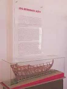 En este contexto de actividad comercial y portuaria se fragua la participación de Moguer en el Descubrimiento de América. En 1488 se construye, en los astilleros del puerto, la carabela La Niña, denominada en su botadura “Santa Clara” en honor a la titular del Monasterio de Santa Clara de Moguer. Era propiedad de los Hermanos Niño, concretamente de Juan Niño. Fue construida por los carpinteros de ribera, de los astilleros del Puerto moguereño, con pinos y chaparros de los montes moguereños.[3]