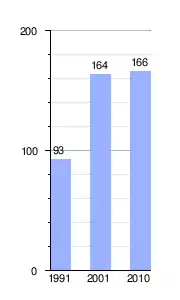 Gráfica de evolución demográfica de Puesto de Castro entre 1991 y 2010 |