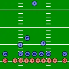En la formación de punt o "patada de despeje", normalmente el punter se ubica cerca de 15 yardas detrás de la línea de scrimmage, esto incluye el caso de tener que estar dentro de su propia zona de anotación y en este caso el punter o despejador debe acortar esa distancia de 15 yardas ya que no puede tocar la "línea final" de la misma ya que se puede marcar un safety a favor del equipo contrario. En el fútbol canadiense no hay necesidad de ubicarse más cerca ya que la zona de anotación es del doble de tamaño que la del fútbol americano.