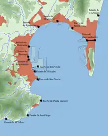 Entre 1735 y 1810 existió en Punta Mala una batería artillera perteneciente a las defensas costeras situadas en la bahía de Algeciras, en las inmediaciones de puesto británico de Gibraltar, construidas por el gobierno español ante el temor de que la colonia británica se extendiera más allá del istmo. Se la conocía como fuerte de Punta Mala. Su finalidad era proteger el fondeadero de Puente Mayorga,[2] dado que cualquier desembarco en esa zona amenazaría el campamento militar de la Línea de Contravalación de Gibraltar. Este fuerte fue totalmente destruido en 1810, junto con las fortificaciones de La Línea de Contravalación y la mayoría de las defensas costeras de la bahía de Algeciras, durante la Guerra de la Independencia por tropas británicas y portuguesas para evitar que cayera en manos de las tropas de Napoleón.[3]