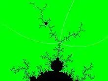 - Puntos sin ramificaciones, con exactamente 2 argumentos externos (puntos de arcos dentro del conjunto de Mandelbrot) que son menos llamativos y no se encuentran fácilmente en las imágenes