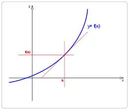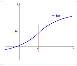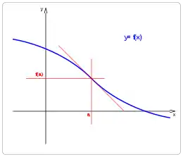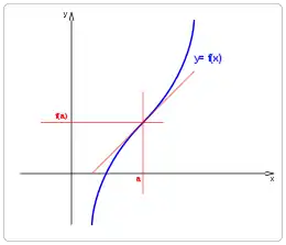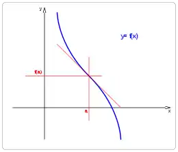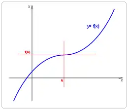 En la matemática, un punto de inflexión de una función, es un punto donde los valores de una función continua en x pasan de un tipo de concavidad a otra. La curva «atraviesa» la tangente.[1] Matemáticamente, la segunda derivada de la función f en el punto de inflexión es cero,[2][3] o no existe.[4]