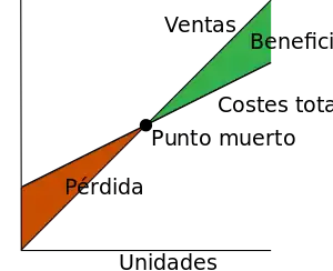 A partir de este volumen mínimo de producción y venta, este producto será rentable para la empresa, en la medida que la empresa consiga seguir produciéndolo y vendiéndolo. Si se produce y no se vende, no sólo no generará ingresos para la empresa, sino que generará costes de almacenaje para la misma. Es decir, a partir de la siguiente unidad producida y vendida, el margen o contribución unitaria, definida como (PVu - CVu), siendo "PVu" el precio de venta unitario y "CVu" el coste variable unitario, se dedica, una vez cubiertos los costes fijos totales, a generar beneficio, ya que los costes variables unitarios se recuperan con la venta de cada unidad. La empresa será rentable o no, dependiendo del número de productos que comercialice, y dependiendo de si todos ellos conjuntamente contribuyen a generar beneficios a través de la diversificación de la cartera de productos. Determina el volumen de producción y de ventas que se debe alcanzar para lograr la igualdad entre los ingresos y costos, para que la empresa no genere perdidas. Solamente podríamos asegurar que la empresa es rentable si la empresa comercializa únicamente un solo producto, y este ha conseguido alcanzar el umbral de rentabilidad o punto muerto.