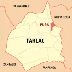 Pura (Bayan ng Pura - Municipality of Pura) es un municipio filipino de quinta categoría, situado en la parte central de la isla de Luzón. Forma parte del Primer Distrito Electoral de la provincia de Tarlac situada en la Región Administrativa de Luzón Central, también denominada Región III.