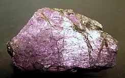 La purpurita es un mineral de la clase de los minerales fosfatos, y dentro de esta pertenece al llamado “grupo de la trifilita”. Fue descubierta en 1905 en una mina cerca de Kings Mountain en el condado de Gaston, en el estado de Carolina del Norte (EE. UU.), siendo nombrada así del latín purpura, en alusión a su color púrpura.[1] Un sinónimo poco usado es el de manganipurpurita.