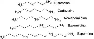 Al igual que la putrescina, las siguientes poliaminas tienen origen biogénico: