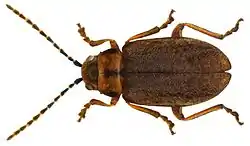 Algunos autores utilizan una definición de género tales como protórax y élitro con pelos, espacio detrás de los ojos más largo que los propios ojos y un labro con una línea de poros con pelos.[2]