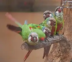 ![]() Pyrrhura leucotis, en Palmitos Park, Gran Canaria. | ||
