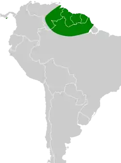 • P. p. picta (subespecie): noreste de Brasil (norte del río Amazonas y al este del río Negro/río Blanco más bajo, aunque cruzando al oeste de este último en Roraima septentrional), el Guianas y el sudeste de Venezuela.