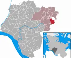 Se encuentra ubicado al oeste del estado, cerca de la desembocadura del río Elba en el mar del Norte y al noroeste de la ciudad de Hamburgo.