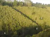 - Se puede visualizar el factor de exposición de ladera entre sur y norte observado claramente sus diferencias de vegetación en la quebrada