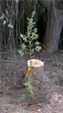 - Ejemplar de Cryptocarya alba plantado en reemplazo de aromo australiano (Acacia melanoxylon)