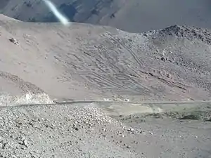 ![]() Geoglifos de Chiza, en la confluencia de la quebrada de Suca y Chiza. | ||