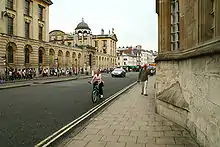 Vista del 'High Street' en Oxford, con la Queen's Lane Coffee House vista en lontananza, pasado el Queen's College a la izquierda.