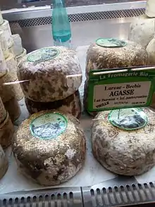 Los quesos de leche de oveja franceses incluyen: Abbaye de Bellocq, [7] Brique, Berger de Rocastin, [8] Brebicet, [9] Le Claousou, [10] Lévejac, Valdeblore, Roquefort, Ardi-gasna, Agour, Ossau-Iraty, Brocciu, [11] Asco, Brin d'amour, [12] Faisselle, [13] Fleur de Maquis, [14] A filetta, [15] y el Niolo.