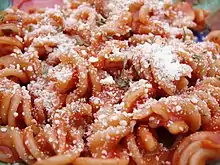 Pasta italiana con salsa de tomate y queso romano.