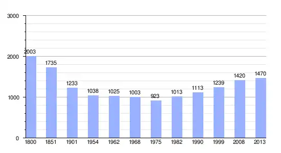 Los datos demográficos contemplados en este gráfico de la comuna de Quettreville-sur-Sienne[4] se han cogido de 1800 a 1999 de la página francesa EHESS/Cassini, y los demás datos de la página del INSEE.[5]
