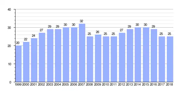 Gráfica de evolución demográfica de Quintán entre 1999 y 2018 |