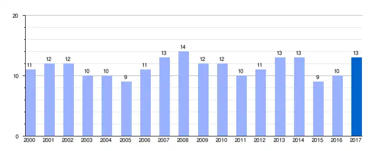 Gráfica de evolución demográfica de Quintanilla entre 2000 y 2017 |