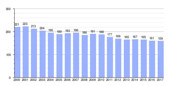 Gráfica de evolución demográfica de Quintanilla de Babia[3] entre 2000 y 2017 |