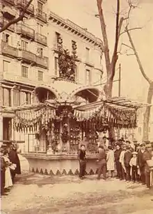 Este primer quiosco de madera fue sustituido en 1890 por otro diseñado por Pere Falqués, sucesor de Rovira como director de Edificaciones y Ornamentación.[3] Un año antes, Falqués había instalado junto al quiosco la famosa fuente de Canaletas, que con el tiempo se convirtió en un icono de la ciudad.[4]