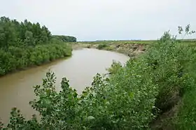El río, desde que deja las montañas de Altái, describe los grandes meandros característicos de los ríos de la estepa. Sus aguas se utilizan fundamentalmente para el riego de cultivos. Cuando el río desemboca en el Obi, tiene una anchura de unos 70 m y una profundidad de 1,5 m.