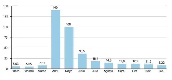 Considerando sólo el período estival libre de hielo (de abril a octubre) el cuadal mensual mínimo observado fue de 4,04 m³/s, en agosto de 1956.