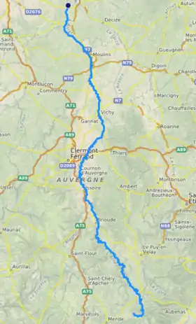 ![]() ![]() ![]() ![]() Departamentos de Lozère, Ardèche, Alto Loira, Puy-de-Dôme, Allier, Nièvre y Cher | |