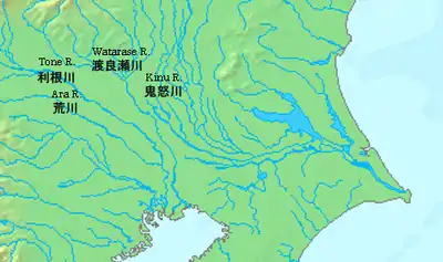 El shogunado del período Edo impulsó el control de los ríos de la llanura de Kantō, tanto para beneficiarse del cultivo de la tierra como del transporte ribereño de mercancías. Tokugawa Ieyasu nombró a Ina Tadatsugu (伊奈忠次) como Kantō Gundai (関東郡代, gobernador civil del Kantō rural). Tadatsugu y los sucesores de su clan, como Ina Tadaharu (伊奈忠治), supervisaron numerosas obras públicas en etapas múltiples y complejas para domar los ríos de la llanura de Kantō.