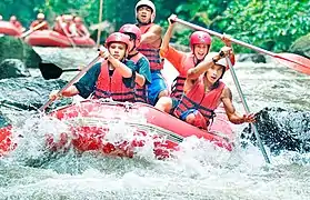 El uso principal de la cuenca de drenaje del río de Ayung es para la agricultura. [2] Las vistas panorámicas se observan principalmente río arriba, especialmente de Petang a Carangsari, con poca influencia humana. Muchos rápidos desafiantes hacen de este río un buen lugar para hacer rafting.[2]