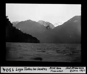 ![]() Mirando hacia el cerro Tronador, una foto del año 1897. | ||