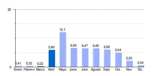 El caudal mensual medio observado en marzo (mínimo de estiaje) es de 0,22 m³/s, mientras que el de mayo alcanza los 12,1 m³/s, lo que subraya las variaciones estacionales de amplitud muy elevada. En los 26 años del periodo de observación de 26 años, el caudal mensual mínimo fue de 0,01 m³/s (diez litros) en marzo 1962, mientras que el máximo se elevó en mayo de 1966 a 40,3 m³/s.
