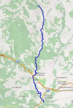 De aguas silíceas y nacimiento en las estribaciones de Peña Cuiña a 1004 metros de altitud, este río de fondo rocoso con pedrizas y gravas en sus tramos superiores y gravillas en los inferiores, discurre por un valle estrecho que empieza a abrirse a partir de Villafranca del Bierzo, dando lugar a un excelente tramo de pesca con buenas tabladas y abundantes truchas. En esta zona se le agregan las aguas del río Valcarce.