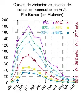 ![]() Curva de variación estacional del río Bureo en Mulchén. |