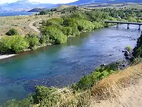 ![]() Lago Huechulafquen y puente sobre el Río Chimehuin. | ||