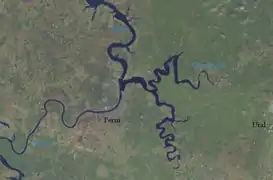 - En la confluencia con el río Kama en el embalse homónimo, lo cruza un puente de ferrocarril