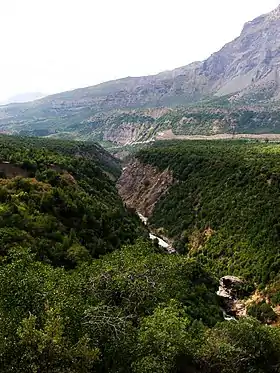 ![]() Vista desde el camino que lo bordea en la Reserva Nacional Cipreses, Chile. | ||