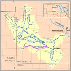 Su curso mide 245 km de largo. El río discurre en sentido contrario a las Coteau de las Praderas, en un valle arbolado, en el sureste del estado de Minnesota.