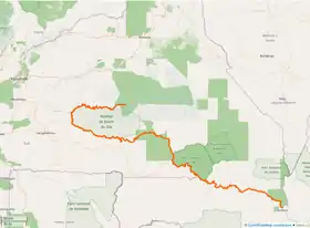 En el tramo final de la reserva, el río también es durante un corto tramo la frontera entre las regiones del Este y del Sur, en la que no entra. Vira hacia el sureste y tras un corto tramo llega a la frontera con la República del Congo. Durante toda la parte final de su curso, en dirección este-sureste, el río formará la frontera natural entre Camerún y el Congo (en concreto, con la región de Sangha).