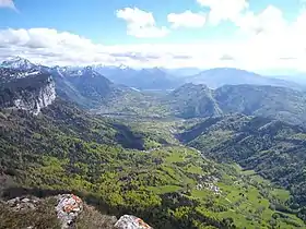 ![]() El valle de Dingy-Saint-Clair visto desde la Parmelan. | ||